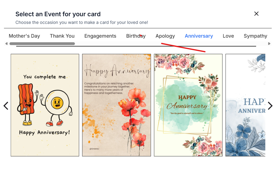 Choose from 100+ professionally designed templates across 25+ occasions — birthdays, thank-you notes, anniversaries, apologies, or just because. Whether you're feeling festive or formal, there’s something for everyone.