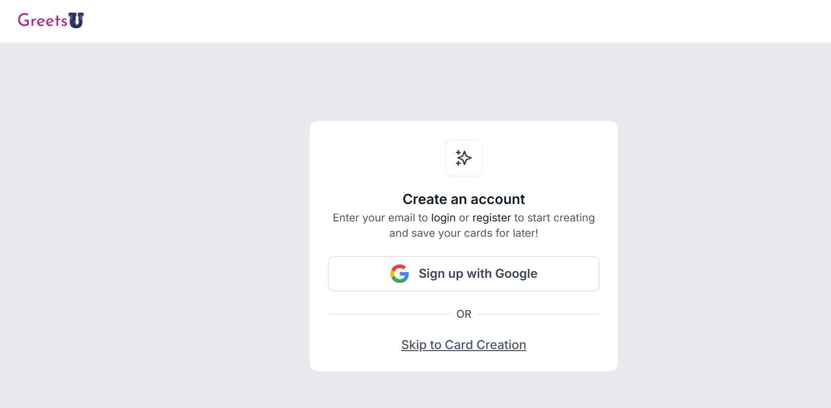 Unlike other platforms that force you to register upfront, GreetsU lets you create, preview, and share without the hassle of account creation. Just jump in and start designing.